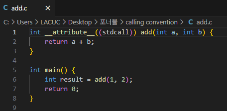 아까의 add.c 파일을 stdcall방식으로 컴파일해보겠습니다.