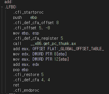 먼저 add부분의 어셈블리어부터 살펴보겠습니다.