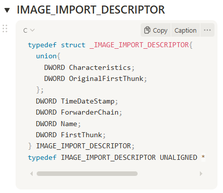 PIMAGE_IMPORT_DESCRIPTOR는 위의 IMAGE_IMPORT_DESCRIPTOR의 구조체 하나를 가리키는 포인터자료형입니다