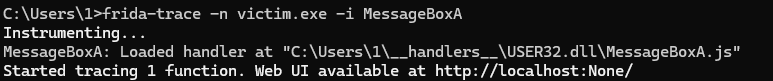 frida-trace -n victim.exe -i MessageBoxA