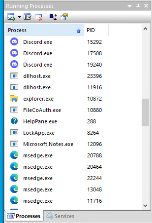 이 중에서 저희가 보고싶은 내용은 프로세스의 PID입니다. 프로세스는 왼쪽하단에서 확인할 수 있습니다