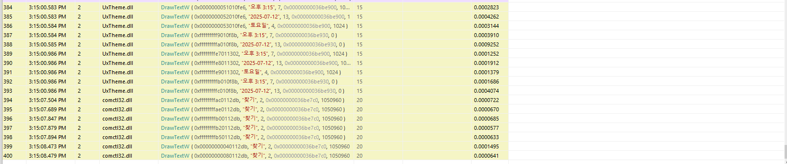 보니까 바탕화면이나 작업표시줄에 마우스를 가져다대면 DrawTextW가 호출되고, 파일을 클릭하고 파일 안에 있는 이름들을 출력할때는 DrawTextExW함수가 호출되는 것을 확인하였습니다.