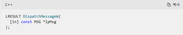 먼저 DispatchMessageW의 함수 원형에 대해 살펴보겠습니다.