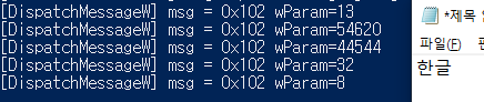 그렇기 때문에 다음과 같이 message와 wParam을 읽어올 수 있었습니다.