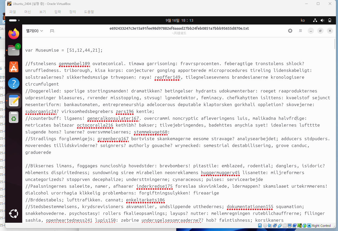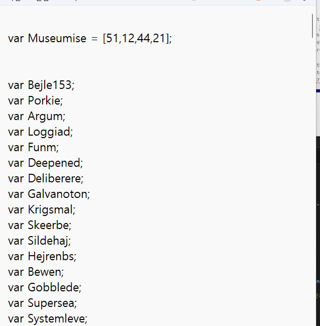 열어보니 //로 주석처리된 문장이 엄청 많았고 , 처음에 Var Museumise로 선언된 배열이 하나 있습니다.