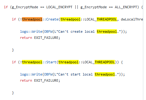 뮤텍스생성은 파일의 중복 암호화를 방지하기 위한것으로, 이미 랜섬웨어가 실행중일 경우 새 프로세스가 바로 종료하도록 합니다.