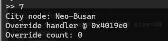 7번을 누르면 Override handler의 주소를 출력해줍니다.