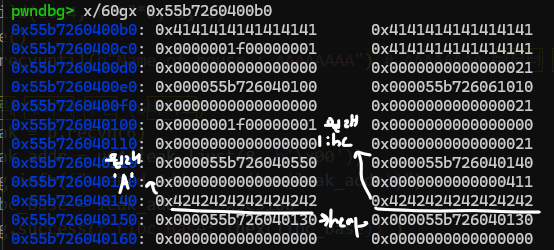 해당 오프셋은 일정한 오프셋이기 때문에 payload에 넣어주면 heap base를 구할 수 있습니다.