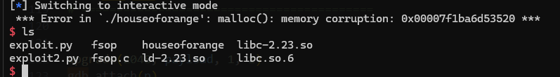 이런식으로 더 leak이가능했고 근데 leak된 값이 조금 이상해서 중간에 gdb attach를 추가해주고 bins를 보니까