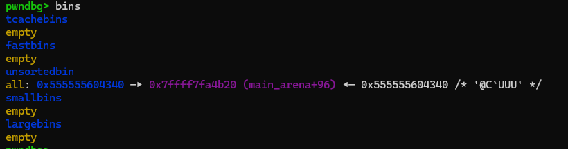 청크를 smallbins에 넣는 것 까지 성공했습니다.