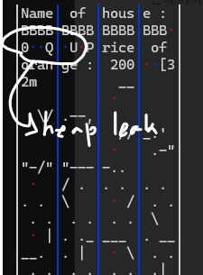 코드는 거의 비슷하게 작성했는데 see the house 를 했을 때 제 코드에서는 Name Of house랑 price of orange사이에 아무것도 leak 이 안되는데 익스에 성공한 코드는 그 사이에 힙 주소가 leak이 됩니다.