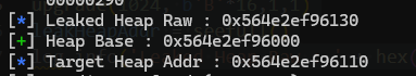 0x130의 값이 나오는 걸 확인할 수 있습니다 (leaked heap raw - heap base)