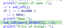 해당 코드는 upgrade the house의 소스코드인데, 사용자에게 새로운 이름의 길이를 입력받지만, 기존에 할당된 name 버퍼의 크기를 확인하거나 realloc을 하지 않기 때문에, 처음 build시 작은 크기로 할당했더라도 Upgrade로 4096바이트를 입력하면 힙 뒤쪽의 데이터를 덮어쓸 수 있습니다.