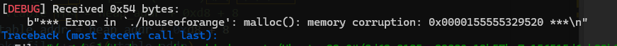 Build -> set으로 top chunk size 덮어쓰기 -> build(size 4000이상) -> build(16바이트) -> see the house 이런 순서로 진행하니까 house 이름 뒤에 무언가 leak이 되고있습니다.