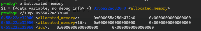 allocated_memory의 위치를 확인하고 근처 위치를 찍어봤습니다