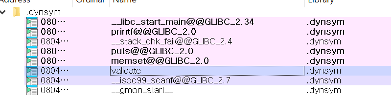 입력값을 검사하는 함수인 validate가 14_angr_shared_library.so에 따로 포함되어 있습니다.
