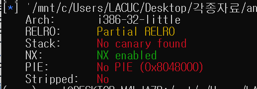 오랜만에 checksec을 써보니 NX만 켜져있고 다 꺼져있네요.