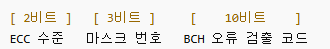 이 비트들은 오류 보정 수준(ECC Level)과 마스크 패턴 번호를 가지고 있으며 나머지는 BCH 오류 검출 코드로 구성됩니다.