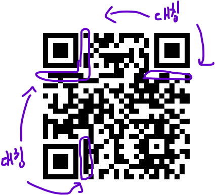 QR코드는 흰색칸이 0 검은색 칸이 1로 저장이 되어서 저장이 된 형태입니다.
